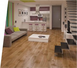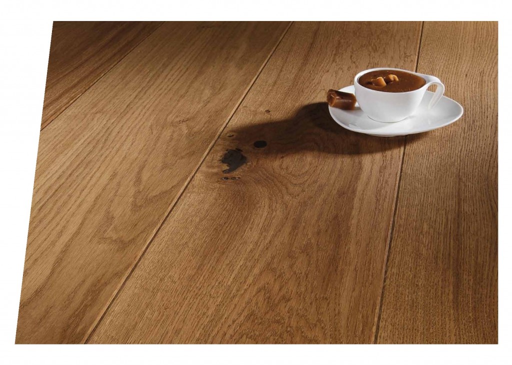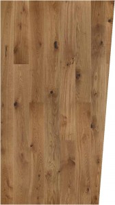 Plain oak floorboard in warm shade of brown. Bevelled floorboards with clearly visible edges, coated with oxidative oil. The natural structure of the wood is brought out by the brushing process